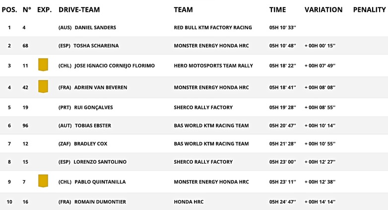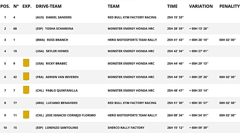 Ωστόσο, οι τρεις πρώτοι της κατάταξης, ο Skyler Howes, ο Ross Branch και ο Ricky Brabec, προκάλεσαν τα μεγαλύτερα πρωτοσέλιδα. Στην προσπάθειά τους να φτάσουν τον Sanders στην γενική κατάταξη, έπεσαν θύματα ενός σοβαρού λάθους πλοήγησης. Μόλις 15 χιλιόμετρα πριν από το τέλος, το λάθος που έκαναν τους κόστισε ακριβά. Οι τρεις αναβάτες, που προσπαθούσαν ήδη να ανακτήσουν χρόνο από τον Sanders, είδαν τις διαφορές τους να φτάνουν ή και να ξεπερνούν τα 25 λεπτά. Ο πρωταθλητής του W2RC, Ross Branch, είναι τώρα πιο πίσω με διαφορά 26 λεπτά, ακολουθούμενος από τον Skyler Howes στα 27 και τον Ricky Brabec, στα 29. Αυτό που φαινόταν να είναι μια μάχη για το βάθρο, γρήγορα μετατράπηκε σε μια καταστροφική ανατροπή.
