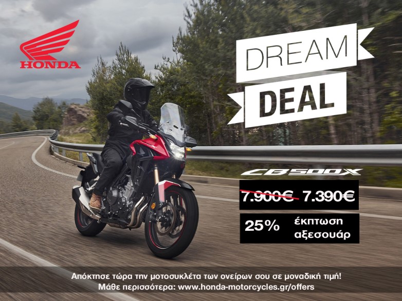 - CB 500X: Στη μοναδική τιμή των 7.390€ (όφελος 600€) και επιπλέον 25% έκπτωση σε γνήσια αξεσουάρ