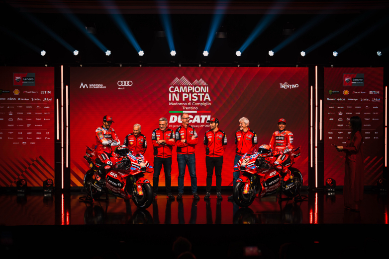 Η παρουσίαση της εργοστασιακής ομάδας της Ducati στο χιονοδρομικό κέντρο Madonna di Campiglio, ήταν εντυπωσιακή και αμέσως μετά οι οδηγοί της ομάδας Pecco Bagnaia και Marc Marquez μαζί με τον Team Manager Davide Tardozzi έδωσαν συνέντευξη τύπου στην οποία αναφέρθηκαν στη χρονιά που μόλις ξεκίνησε επισήμως για την ομάδα.