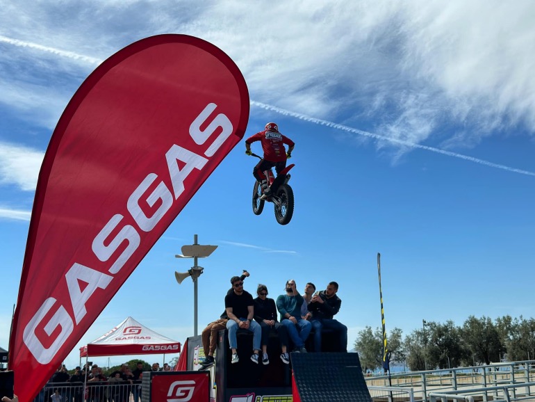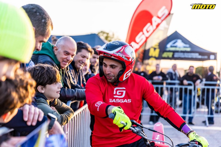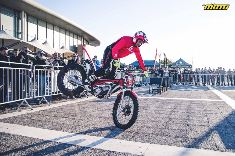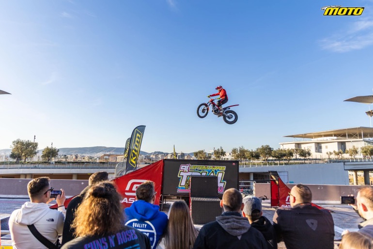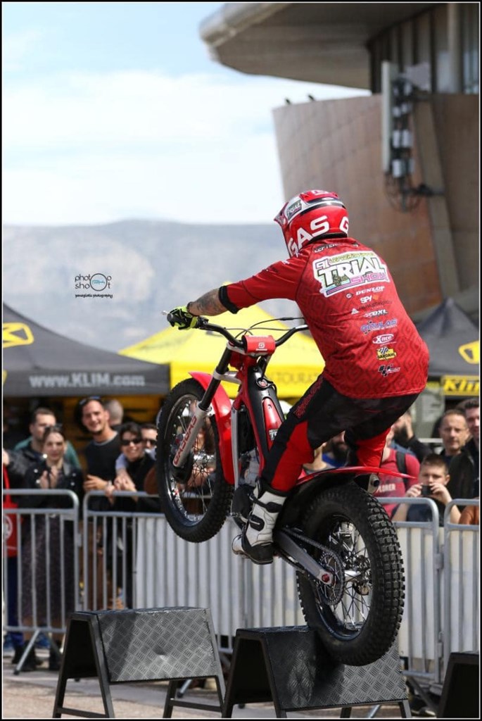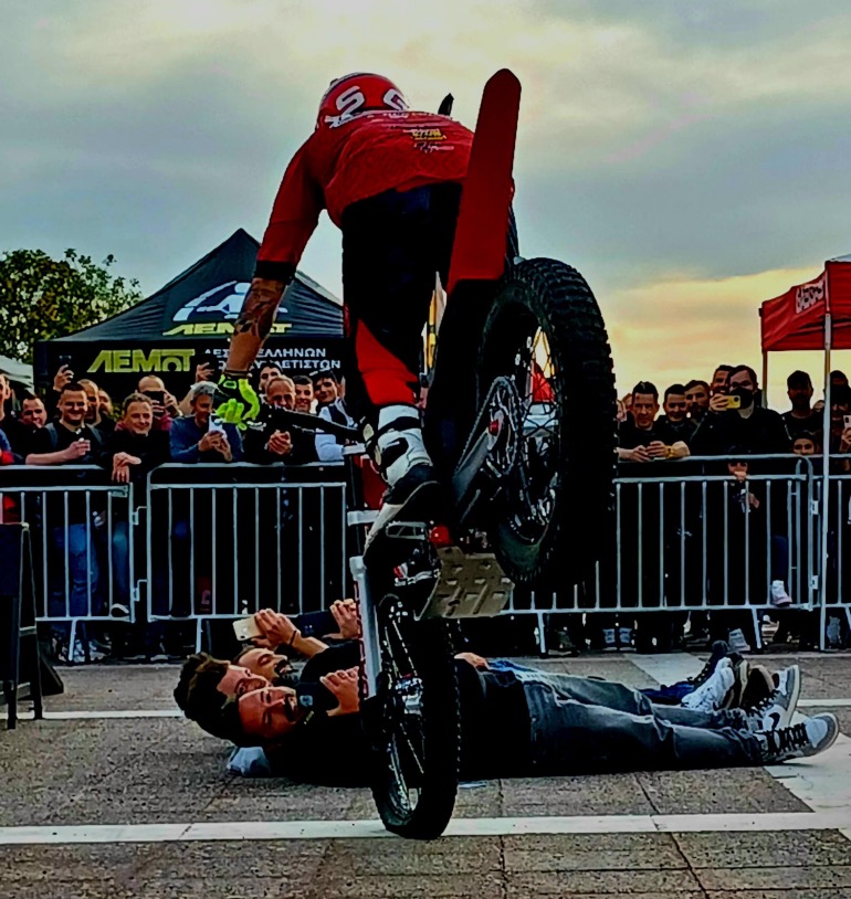 Στον εξωτερικό χώρο της Έκθεσης στήθηκε ένα σύμπλεγμα εμποδίων, που προσομοιάζει όσο γίνεται τα βραχώδη φυσικά εμπόδια μιας αγωνιστικής διαδρομής trial. Ο Λευτέρης Πίππος πάνω στην ολοκαίνουργια μοτοσυκλέτα του, μια κατακόκκινη GASGAS, έκανε απίστευτα πράγματα, μέχρι και πάνω από ξαπλωμένους θεατές πέρασε χωρίς να τους ακουμπήσει βέβαια. Χαράς στο κουράγιο τους και αυτούς που δέχτηκαν και εμπιστεύτηκαν τον Έλληνα Πρωταθλητή!