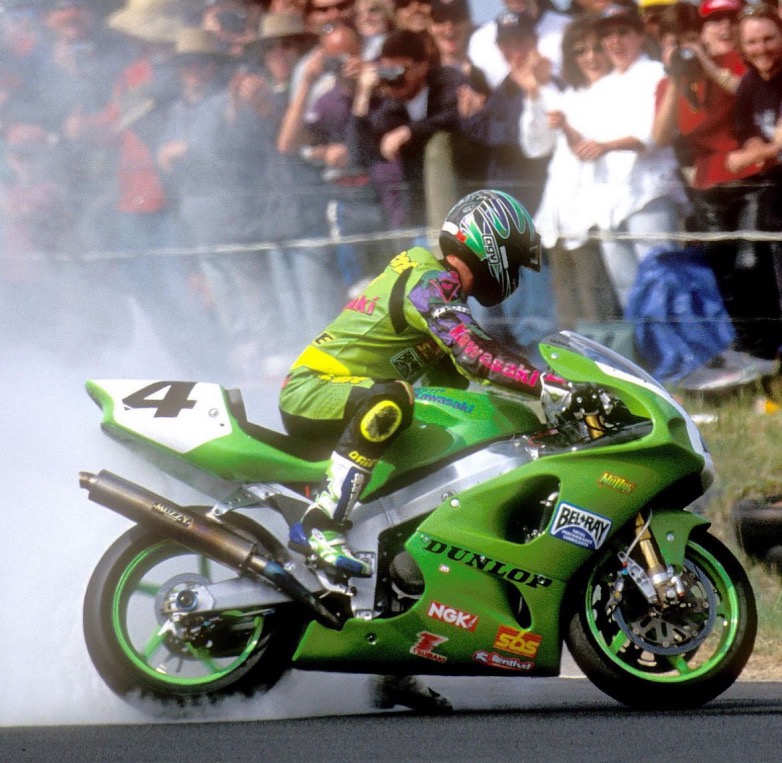 Ήταν εξαιρετικός στο WorldSBK την ίδια χρονιά, κερδίζοντας τον δεύτερο Αγώνα στο Phillip Island ως δοκιμαστής οδηγός για την Muzzy Kawasaki, την ομάδα στην οποία θα έμενε για τις επόμενες δύο σεζόν, πριν μεταπηδήσει στη Lucky Strike Suzuki για μια άτυχη σεζόν του 1997, στην οποία θα έχανε τη συμμετοχή του βγαίνοντας θετικός για χρήση μαριχουάνας.