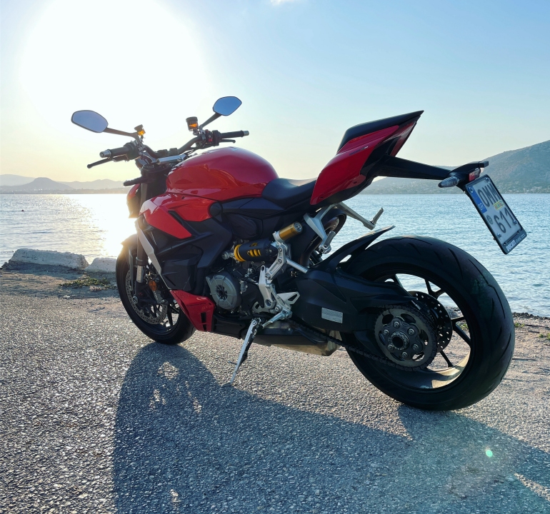 Αυτή η νέα μοτοσυκλέτα ήρθε τις τελευταίες ημέρες και στη χώρα μας και η πρώτη διαθέσιμη για δοκιμή, μόλις βγήκε από τα γραφεία του Ducati Store στην Καλλιρρόης στην Αθήνα, βρέθηκε στα χέρια της “Ζούγκλας” για μια εξαντλητική δοκιμή που περιλάμβανε οδήγηση σε δύο πίστες και βέβαια κυρίως στο δρόμο, μέσα στην πόλη, αλλά και σε ταξίδι που περιλάμβανε και γνωστές διαδρομές με συνεχείς στροφές. Πολλά χιλιόμετρα για να καταλάβουμε με τον συνεργάτη μας Κυριάκο Αντωνίου, το σπορ DNA της Panigale V2, που συνδυάζεται με το στυλ του “Μαχητή των Δρόμων” (Streetfighter).