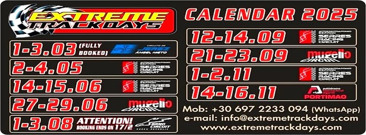 Η EXTREME TRACKDAYS για το 2025 ξεκινά τις διοργανώσεις της στις 22 Φεβρουαρίου στα Μέγαρα!