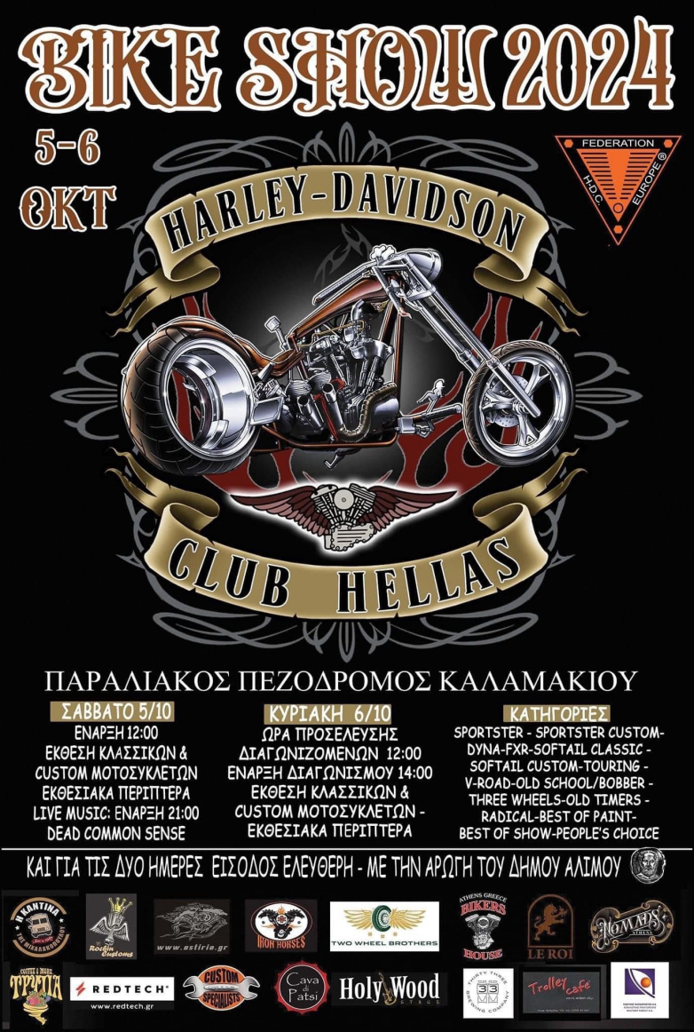 Με την αρωγή του Δήμου Αλίμου το Harley Davidson Club Hellas διοργανώνει για άλλη μια χρονιά το «BIKE SHOW 2024», το μεγαλύτερο φεστιβάλ στον χώρο της HARLEY DAVIDSON!!!
