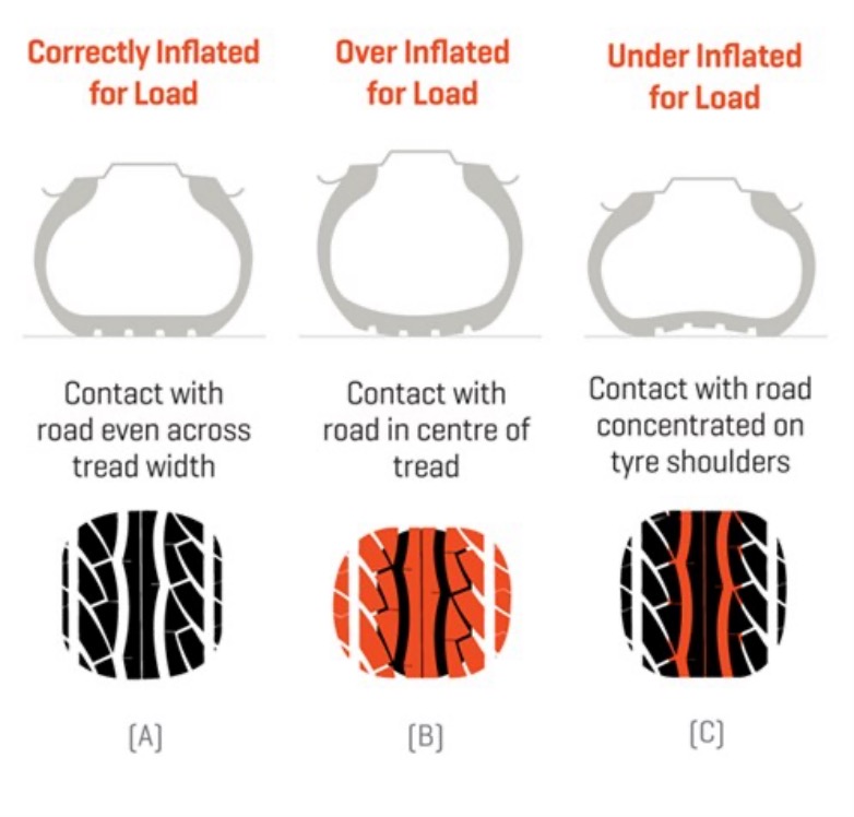 Το φορτίο που δέχεται το ελαστικό είναι συγκεκριμένο και με ένα μικρό εύρος διαφοροποίησης από μηδενικό μέχρι το μέγιστο επιτρεπόμενο και η λειτουργία του, ειδικά σε συνθήκες όπου δέχεται έντονα πλευρικά φορτία, αλλάζει τη συμπεριφορά από την ιδανική μέγιστη πρόσφυση σε λιγότερη πρόσφυση και απότομη συμπεριφορά όταν δέχεται πολύ μικρά φορτία ή πολύ μεγάλα και αντίστοιχα η πίεση δεν είναι η σωστή. Η προοδευτική συμπεριφορά στον τρόπο που θα φτάσει το ελαστικό στη μέγιστη πρόσφυση, και η διατήρηση μιας προοδευτικής μείωσης της πρόσφυσης σε πολύ μεγάλη ολίσθηση, είναι συνάρτηση της σωστής πίεσης και του φορτίου που δέχεται το ελαστικό. Είναι πολύ σημαντικό λοιπόν να έχουν τα ελαστικά τη σωστή πίεση αέρα για να αποδώσουν το μέγιστο δυνατό κράτημα στις αλλαγές των φορτίων που δέχονται και για να διατηρήσουν την προοδευτική συμπεριφορά που είναι σχεδιασμένα να έχουν σε οριακές συνθήκες.