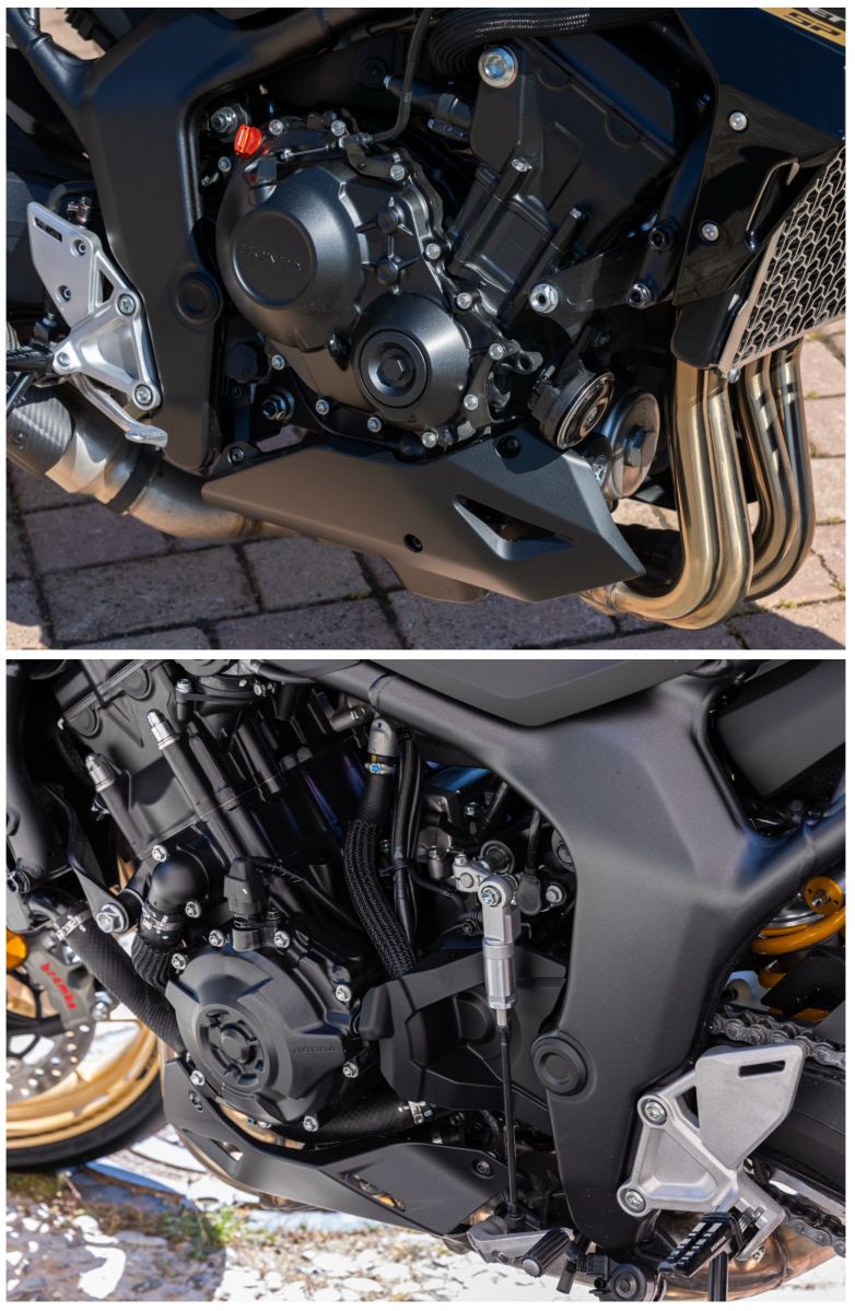 Οι υπόλοιπες προδιαγραφές του κινητήρα είναι ίδιες με της CB1000 Hornet. Είναι ρυθμισμένος να προσφέρει υψηλή ροπή στις χαμηλές και μεσαίες στροφές, για άμεση απόκριση και ομαλή λειτουργία σε διαδρομές πόλης. Στον ανοικτό δρόμο η μέγιστη ισχύς είναι απολαυστική, με μια συναρπαστική καμπύλη ισχύος μέχρι το κόκκινο.