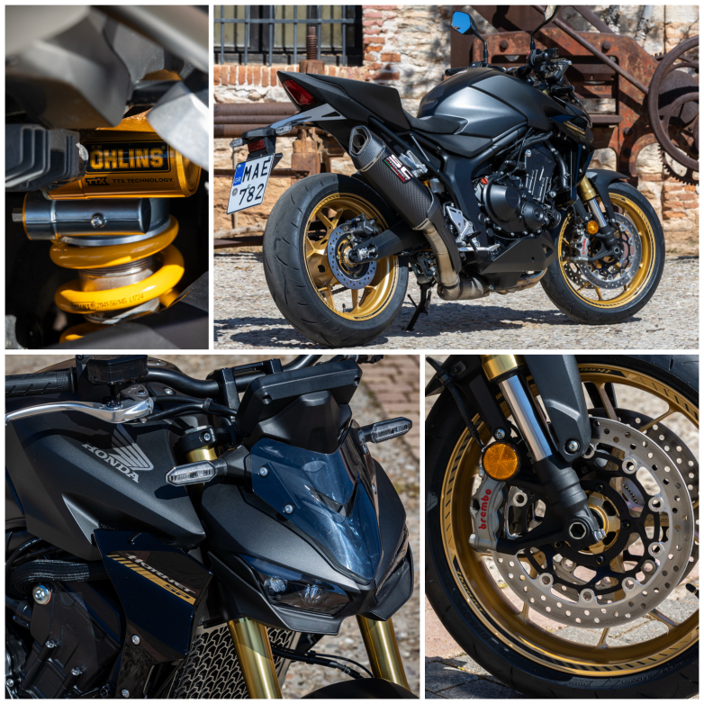 Το λιτό αλλά ιδιαίτερα επιθετικό στυλ αναδεικνύεται από τους διπλούς LED προβολείς. Το διακριτικό, μαύρο νέο πλαίσιο διπλής δοκού (twin-spar) αποτελεί επίσης μέρος της όλης σχεδίασης, και υποστηρίζεται από ένα χρυσό πιρούνι SFF-BP 41χλστ. της Showa και πλήρως ρυθμιζόμενο πίσω αμορτισέρ TTX36 της Öhlins για υψηλής ποιότητας σύστημα ανάρτησης. Ακτινικά τοποθετημένες, τετραπίστονες δαγκάνες συνδυάζονται μπροστά με πλευστούς δίσκους 310mm, ενώ οι εμπνευσμένες από την CBR1000RR-R χυτές ζάντες φοράνε ελαστικά 120/70-ZR17 και 180/55-ZR17 εμπρός/πίσω.