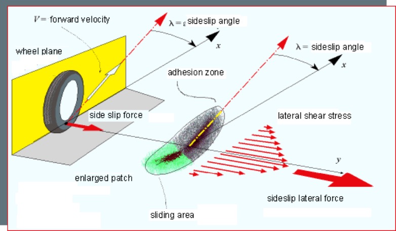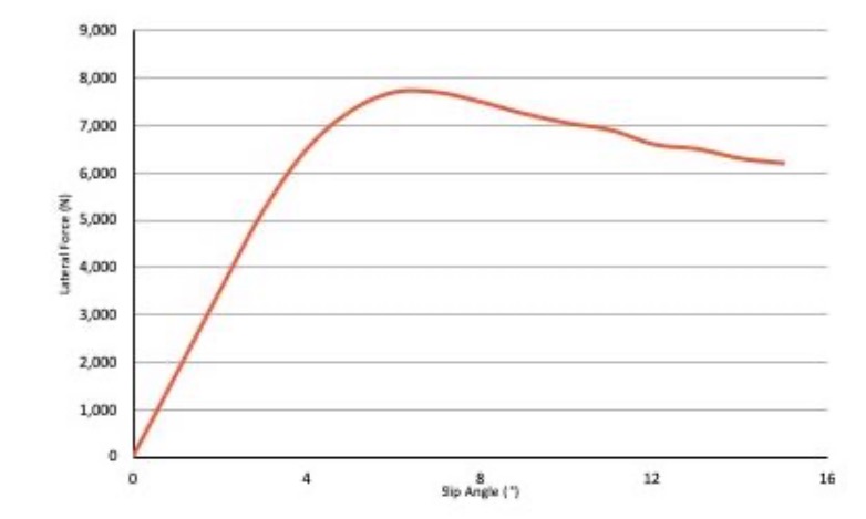 Όλη αυτή η παραπάνω διαδικασία μερικής ή ολικής ολίσθησης της επιφάνειας επαφής των ελαστικών, έχει ως αποτέλεσμα την ομαλή αρχικά δημιουργία δυνάμεων τριβής και όπως φαίνεται και στο λεγόμενο διάγραμμα ολίσθησης, δημιουργείται μία αναλογική καμπύλη αύξησης της διαθέσιμης πρόσφυσης σε συνάρτηση της γωνίας εκτροπής σε αρχικό στάδιο, ενώ από τη μέγιστη διαθέσιμη πρόσφυση και μετά η γωνία γίνεται ολίσθησης και η πρόσφυση μειώνεται όσο η γωνία αυξάνει.