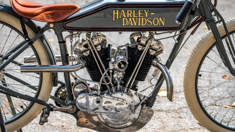 Μια από αυτές είναι η αγωνιστική Harley Davidson 8-Valve Board Track Racer του 1916 που έτρεχε σε αγώνες που γίνονταν σε οβάλ ξύλινες πίστες.
