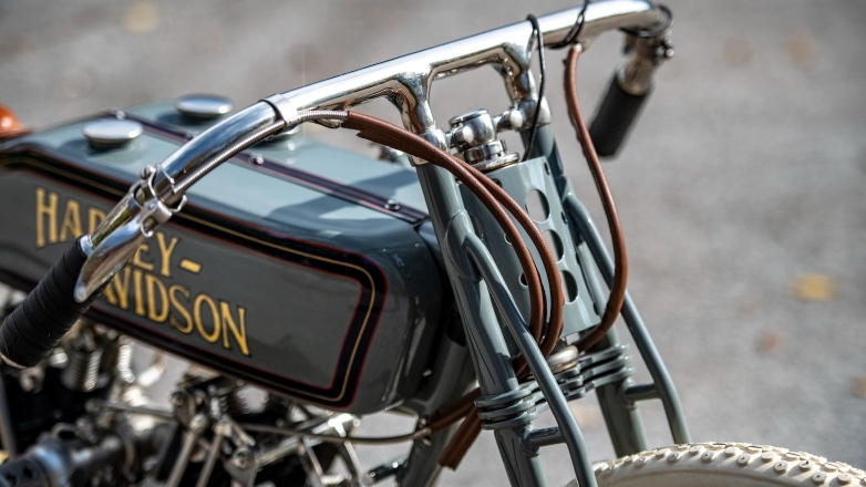 Μία από τις έξι κατασκευασμένες, η μοναδική 8-Valve Board Track Racer που σώζεται ολοκληρωμένη και αναπαλαιωμένη από το πιο σεβαστό όνομα στις πρώτες Harley-Davidson, αυτή η δικύλινδρη αερόψυκτη V2 8βάλβιδη μοτοσυκλέτα πίστας του 1916 δεν είναι απλώς σπάνια.