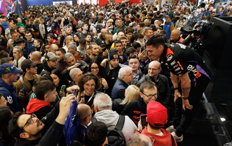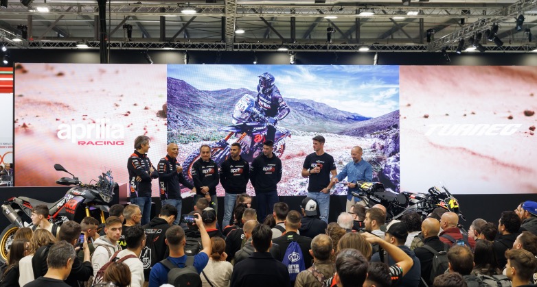 Στο περίπτερο της Piaggio, η Aprilia Racing γιόρτασε τις νίκες των Πρωταθλητών της με αφορμή την 81η διοργάνωση της Διεθνούς Έκθεσης Δίτροχων (EICMA). Τα αστέρια του MotoGP, οι αναβάτες της Ομάδας Aprilia Tuareg Racing και οι νικητές του Aprilia Trophy ήταν στη σκηνή.