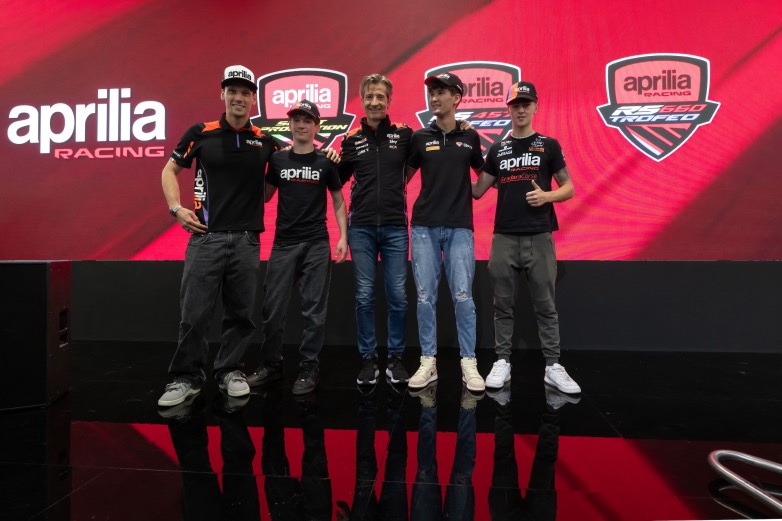 Η παρουσίαση ξεκίνησε με βραβεία στους πρωταγωνιστές του Aprilia Trophy 2024: Thomas Benetti, νικητή του Ιταλικού Πρωταθλήματος Μοτοσυκλετών Παραγωγής FMI της Aprilia και Filippo Bianchi, νικητή του RS 660 Aprilia Trophy. Μαζί τους ο Tommaso Marcon, βασικό πρόσωπο στην ανάπτυξη των μοτοσυκλετών της κατηγορίας Trophy. Στη σκηνή ανέβηκε και ο Edoardo Colombi, ο οποίος έχασε για λίγο τον τίτλο της κατηγορίας SportBike στο BSB στη “rookie” χρονιά του, κερδίζοντας 8 εκπληκτικές νίκες και 12 βάθρα σε 15 Aγώνες.