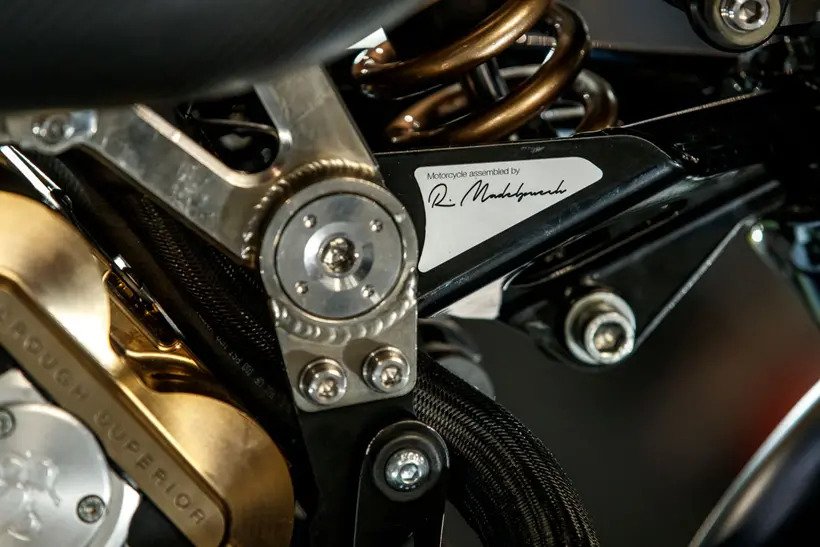 Προχωρώντας από το σασί, το μινιμαλιστικό οδοντωτό αμάξωμα λέγεται ότι είναι εμπνευσμένο από το ξίφος που χρησιμοποιούσε ο T.E. Lawrence και έρχεται σε μαύρο χρώμα, με δέσιμο χρωμίου στον δικύλινδρο κινητήρα και διακριτικά χρυσά φινιρίσματα στα λογότυπα και ζάντες 17 ιντσών.