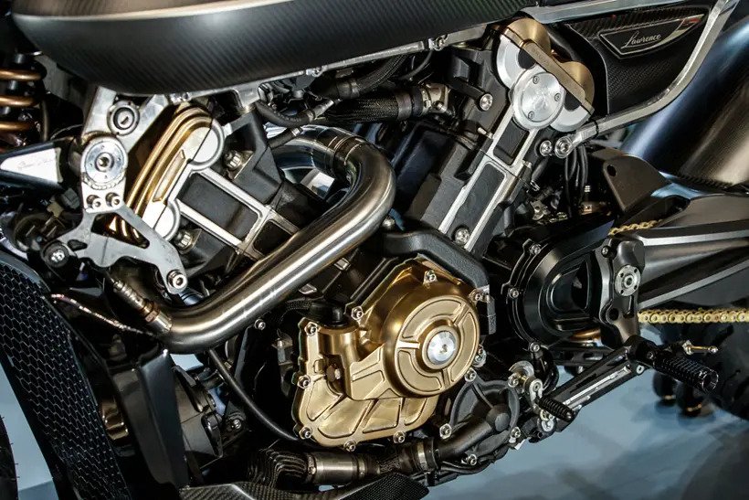 Ο κινητήρας προδιαγραφών Euro5 των 101 ίππων περίπου είναι τοποθετημένος σε ένα επεξεργασμένο πλαίσιο τιτανίου, το οποίο βιδώνει σε ένα υποπλαίσιο τιτανίου.