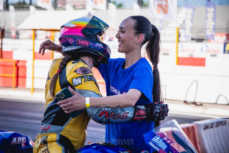 Να ευχαριστήσω την ομάδα μου «ARP Racing», το μηχανικό μου Χρήστο Φράγκο και τον προπονητή μου Δημοσθένη Μαυρόπουλο που πιστεύουν σε μένα και με ωθούν να καταφέρω αυτό που ξέρουν ότι μπορώ. Την ομάδα μοτοσικλετιστριών «Moto Femmes Hellas» που είναι δίπλα μου ηθικά και πρακτικά, αφού έχουμε δημιουργήσει μια fundraising σελίδα για την κάλυψη των εξόδων των αγώνων (https://gogetfunding.com/moto-femmes-racing-team/). Την Intramoto A.E και προσωπικά τον κ. Ηλιόπουλο για τα ελαστικά του αγώνα. Το περιοδικό μοτοσυκλέτας bikeit.gr ως χορηγό επικοινωνίας και τα energy snacks «Energy Balls» της Rho Foods που μας γεμίζουν ενέργεια ανάμεσα από τα απαιτητικά sessions».