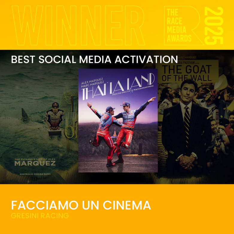 Η καμπάνια κοινωνικών μέσων της Gresini Racing MotoGP, που παρουσίαζε τους Alex και Marc Marquez καθ’ όλη τη διάρκεια της σεζόν του 2024, κέρδισε το βραβείο “Καλύτερης Κινητοποίησης Κοινωνικών Μέσων” την περασμένη Πέμπτη στο Λονδίνο, στα The Race Media Awards. To #FacciamoUnCinema (Ας κάνουμε μαι ταινία) ήταν το κάτι διαφορετικό στην επικοινωνία του MotoGP σε όλη τη διάρκεια του 2024!
