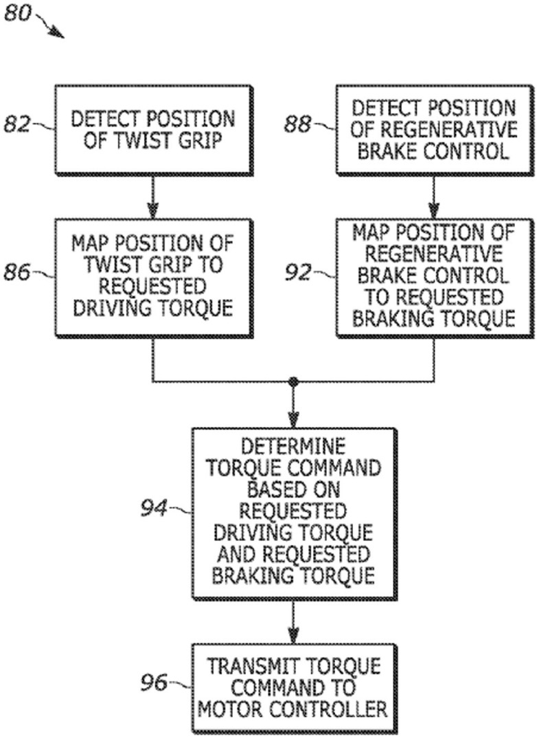Στη συνέχεια, η περιγραφή προσθέτει, «Συνεπώς, οι εφαρμογές που περιγράφονται στην πατέντα παρέχουν μεθόδους και συστήματα για αναγεννητική πέδηση τουλάχιστον ενός τροχού ενός οχήματος, όπως, για παράδειγμα, μιας ηλεκτρικής μοτοσυκλέτας. Σε ορισμένες υλοποιήσεις, η αναγεννητική πέδηση χρησιμοποιείται ως ο μοναδικός μηχανισμός πέδησης σε έναν τροχό του οχήματος, όπως ο πίσω τροχός μιας μοτοσυκλέτας. Η αντικατάσταση ενός πίσω υδραυλικού φρένου με αναγεννητική πέδηση μειώνει το κόστος, το βάρος και την πολυπλοκότητα του οχήματος, κάτι που, όπως σημειώθηκε παραπάνω, επηρεάζει την απόδοση του οχήματος».
