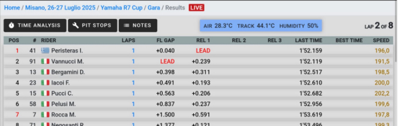 Οι Αγώνες πέρα από ταχύτητα, θέλουν και τύχη, όπως έχουν πει πολλοί Παγκόσμιοι Πρωταθλητές και ο 20χρονος Έλληνας οδηγός Γιάννης Περιστεράς δεν είχε την τύχη με το μέρος του χθες στον 6ο Αγώνα του Ιταλικού Πρωταθλήματος CIV, στην κατηγορία Yamaha R7 Cup.