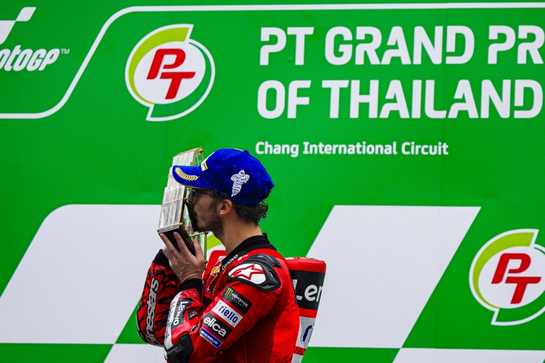 Ο Francesco Bagnaia και η ομάδα της Ducati Lenovo σημείωσαν μια σημαντική νίκη στον Αγώνα Grand Prix της Ταϊλάνδης των 26 γύρων, ο οποίος διεξήχθη σε βρεγμένες συνθήκες στο Chang International Circuit. Ο Εnea Bastianini έφτασε στην καρό σημαία στην 14η θέση, μετά την πτώση στο πρώτο μισό της αναμέτρησης.
