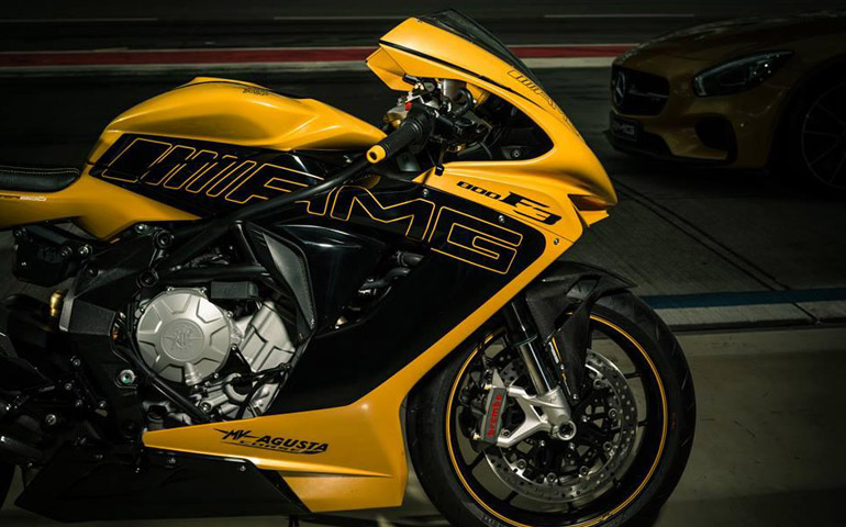 Η εντυπωσιακή F3 800 είναι βαμμένη στα ίδια χρώματα με το γερμανικό supercar, συνδυάζοντας το κίτρινο με το μαύρο. Το δερμάτινο κάθισμα είναι σε μαύρη απόχρωση με κίτρινες ραφές, ενώ δεν λείπουν τα διακριτικά AMG και MV Agusta. Τροφοδοτείται από ένα τρικύλινδρο κινητήρα 798 κ.εκ., απόδοσης 148 ίππων και 88 Nm ροπής, με την τελική ταχύτητα να αγγίζει τα 270 χλμ/ώρα.