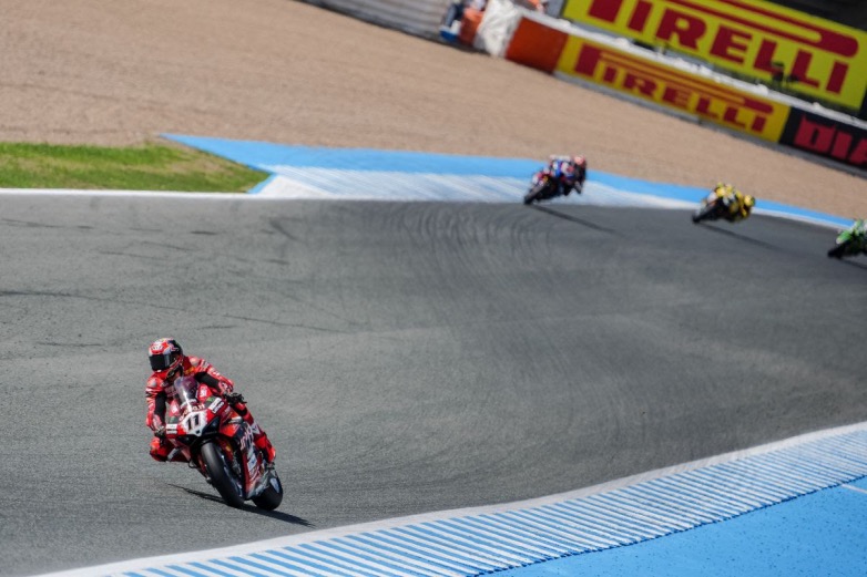 Μια τολμηρή κίνηση του Nicolo Bulega (Aruba.it Racing – Ducati) στην είσοδο στη στροφή 5 στον πέμπτο γύρο ήταν η στιγμή που ο Ιταλός κέρδισε ουσιαστικά τον Αγώνα Tissot Superpole στο Circuito de Jerez Angel Nieto.