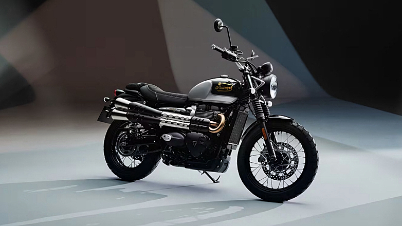 Η Scrambler 900 του 2025 ξεκινά από 11,590 €. Η έκδοση Icon Edition, η οποία εμφανίζει το λογότυπο της Triumph από το 1907, προσθέτει στην τιμή και ανέρχεται στα 12,190 €. Ένα χρώμα Stealth Edition σε πορτοκαλί και μαύρο, διαθέσιμο για μόνο ένα έτος, προσθέτει επίσης στη βασική τιμή. Από τη δεξιά πλευρά της μοτοσυκλέτας φαίνονται οι ψηλές εξατμίσεις, αλλά η Triumph δεν παραμέλησε και την αριστερή πλευρά με την πινακίδα αριθμού.
