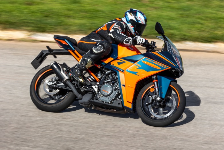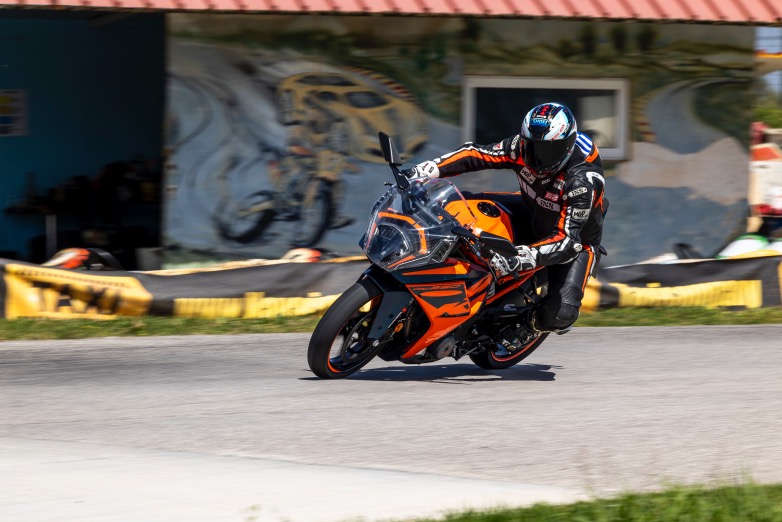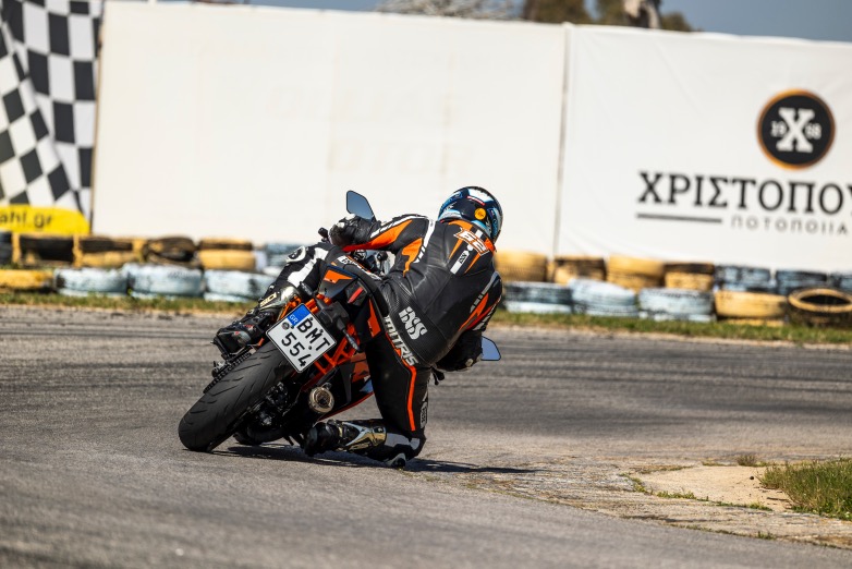 Το σύνολο λειτούργησε πάρα πολύ καλά μέσα στην πίστα, δίνοντας μας όλο και περισσότερη σιγουριά και μαζί το περιθώριο ώστε να πιέζουμε και να βελτιώνουμε συνεχώς τους χρόνους ταχύτερου γύρου. Η αίσθηση μέσα στην στροφή είναι εξαιρετική και στις εξόδους η δύναμη του μοτέρ ικανοποιητική, ακόμη και για τα πολλά κιλά του υπογράφοντος! Φανταζόμαστε πόσο αποτελεσματική είναι η RC390 για έναν πιτσιρικά ελαφρύ οδηγό, όπως ο Παναγιώτης Κολλάρος, που με μια τέτοια μοτοσυκλέτα πρωταγωνιστεί στο Βαλκανικό Πρωτάθλημα.