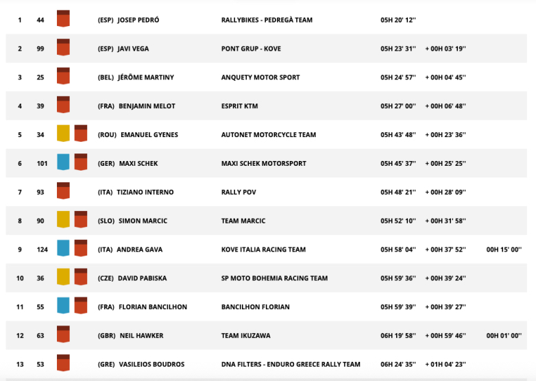 Η κατάσταση στην κατηγορία Rally 2 έχει αλλάξει δραματικά από την εκκίνηση στην Yanbu. Μετά τα ηλεκτρικά προβλήματα του Neels Theric, που του κόστισαν 2 ώρες και 50 λεπτά στον Πρόλογο, και την πτώση του Harith Noah, ήρθε η σειρά του Tobias Ebster να χάσει τις πιθανότητες για τον Τίτλο, για τον οποίο θεωρούνταν ένα από τα φαβορί (9ος γενικής και 2ος στην R2 το 2025). Ο Αυστριακός αναβάτης αναμένεται να εγκαταλείψει λόγω τραυματισμού στο χέρι μετά από πτώση. Παρότι οι κανονισμοί του επιτρέπουν να συνεχίσει, δεν θα είναι πλέον σε θέση να επηρεάσει τη μάχη ανάμεσα στον Mike Docherty, νικητή της σημερινής ημέρας, και τον Martim Ventura, που βρίσκεται 3’32’’ πίσω από τον Νοτιοαφρικανό.