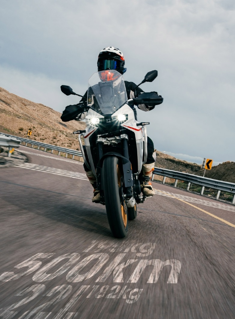 Στον πυρήνα της βρίσκεται ο δικύλινδρος εν σειρά κινητήρας 799 κ.εκ., υγρόψυκτος, με στρόφαλο 285°, τροφοδοσία BOSCH EFI και απόδοση που απλώνεται ομαλά σε όλο το φάσμα στροφών.