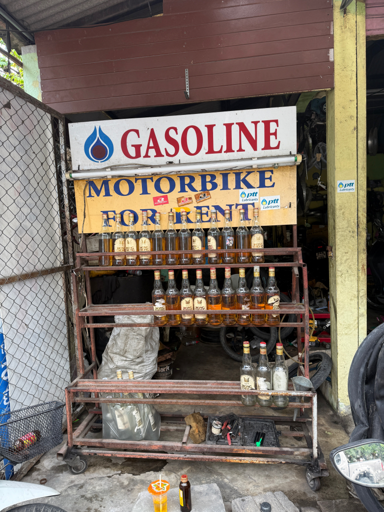 Η βενζίνη είναι σχετικά ακριβή για ασιατική χώρα και είναι στο 1€ ανά λίτρο, ενώ είναι λίγο ακριβότερη αν την αγοράσεις σε μπουκάλι από ποτό, όπως την πωλούν κάποια μαγαζιά ενοικίασης ή επισκευής δίτροχων.
