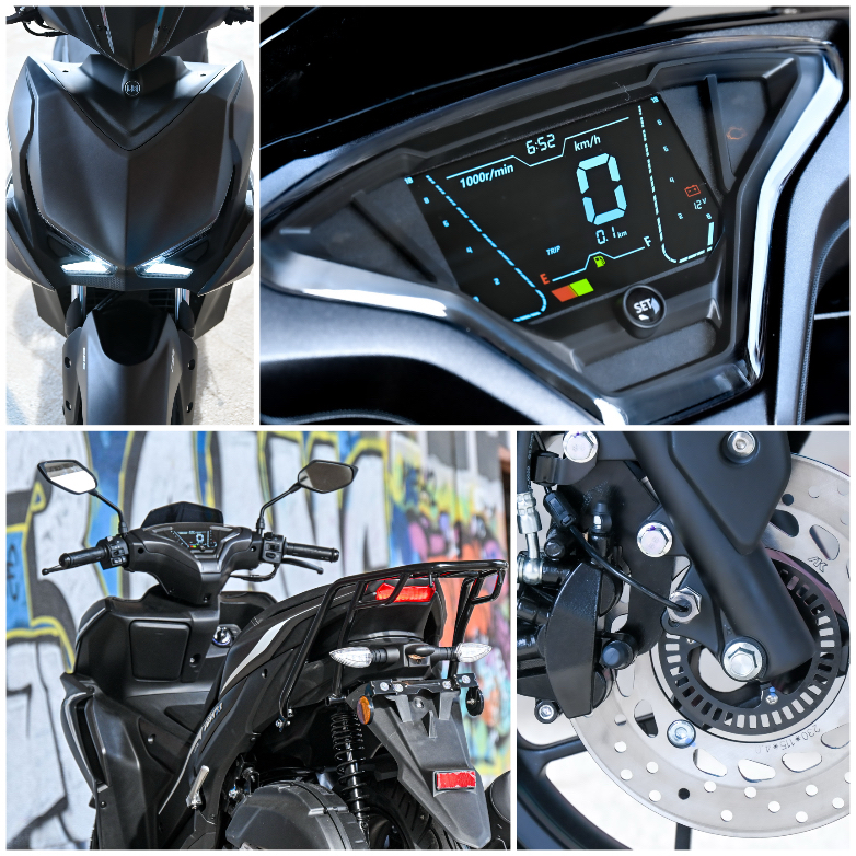 Το ελαφρύ σκούτερ ΝΕΟΝ στα 108 κιλά, με σύγχρονο αερόψυκτο κινητήρα 125 κ.εκ. απόδοσης 9.25 ίππων στις 7,500 σ.α.λ. έχει νεωτερισμούς στην κατασκευή του, όπως αθόρυβη εκκίνηση, επιλογή ανάμεσα σε τροχούς 12 ή 14 ιντσών και εξοπλισμό από εξαρτήματα ποιοτικών εταιριών.
