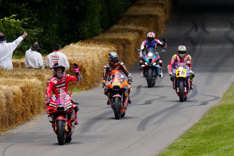 Την Κυριακή ήταν η μεγάλη γιωρτή στο Goodwood, με τον Bagnaia να κατευθύνει τους ήρωες του σήμερα, μαζί με τον Enea Bastianini, τον Brad Binder της Red Bull KTM Factory Racing, τον Augusto Fernandez της Gasgas Factory Racing και Raul Fernandez, με την Aprilia Racing.
