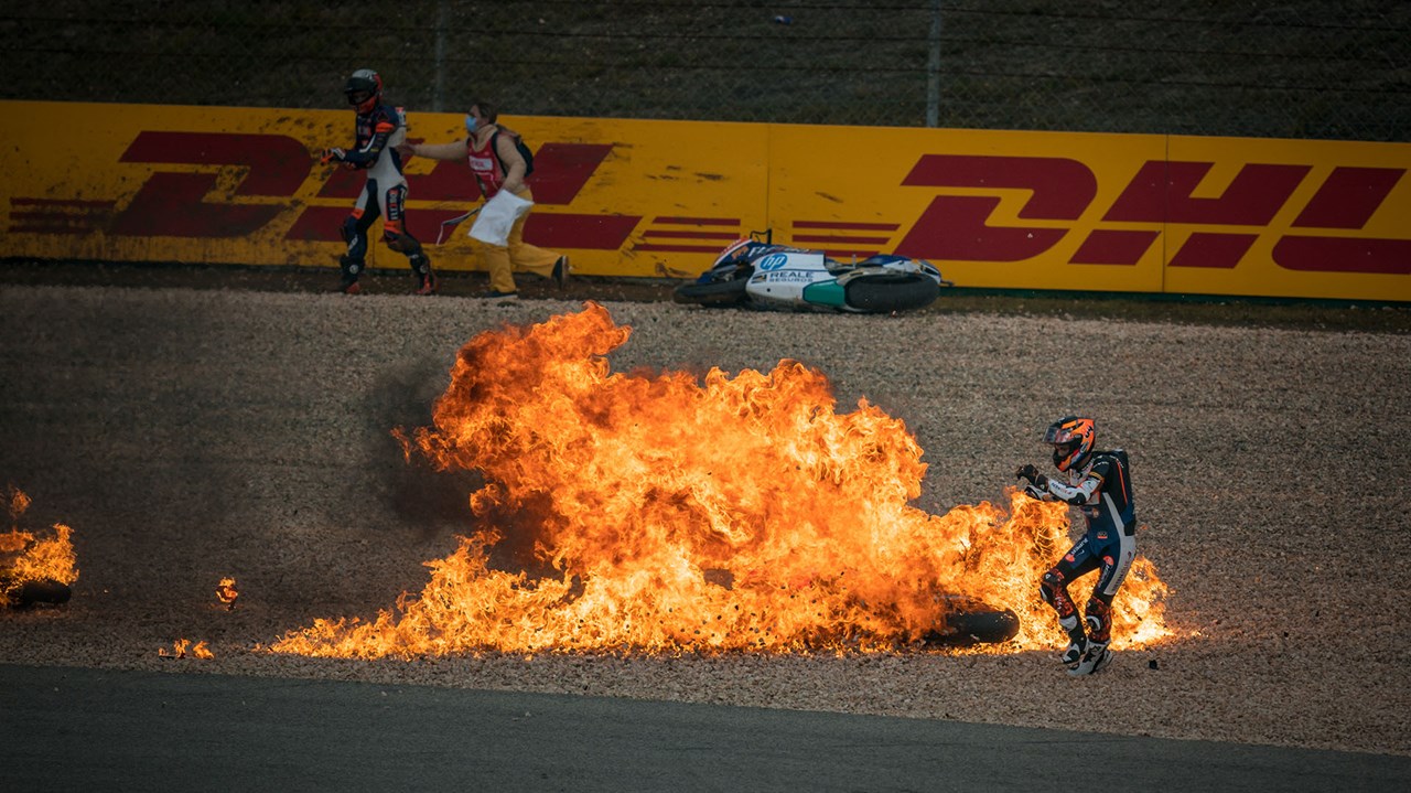 Η ξαφνική βροχή στη δεύτερη στροφή του Portimao προκάλεσε χάος, με πολλούς αναβάτες να πέφτουν και να μην μπορούν να συμμετάσχουν στην επανεκκίνηση.