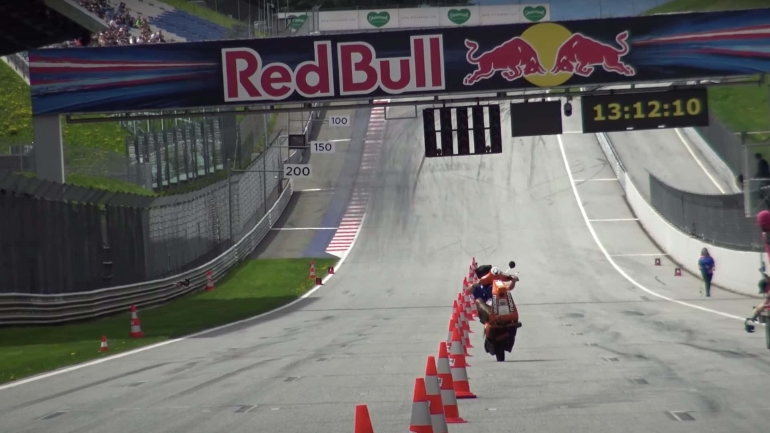 Ο Αυστριακός κασκαντέρ Günter Schachermayr είναι γνωστός για τα κόλπα που κάνει πάνω στη βέσπα του. Ενώ οι περισσότεροι αναβάτες κασκαντέρ επιλέγουν σπορ ή γυμνές μοτοσυκλέτες ο Günter κρατά τα πράγματα απλά με τη δίχρονη βέσπα του. Η πιο πρόσφατη απόδρασή του τον οδήγησε στο φημισμένο Red Bull Ring της Αυστρίας, τη διάσημη πίστα όπου διεξάγονται μερικοί από τους πιο συναρπαστικούς αγώνες στο MotoGP κάθε χρόνο.