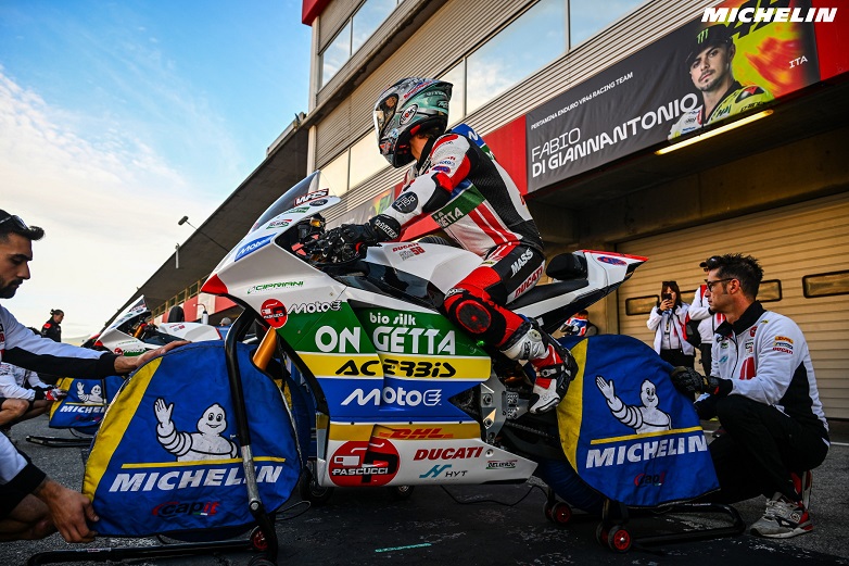 Για να τιμήσει αυτό το ορόσημο, η Michelin παρουσίασε το αποκλειστικό σχέδιο “Race to VISION” στο πέλμα και τα πλαϊνά των ελαστικών MotoE — μια παγκόσμια πρωτιά για slick ελαστικό — που απεικονίζει οπτικά τη δέσμευση του Ομίλου για το όραμα του 2050: παραγωγή 100% βιώσιμων ελαστικών.
