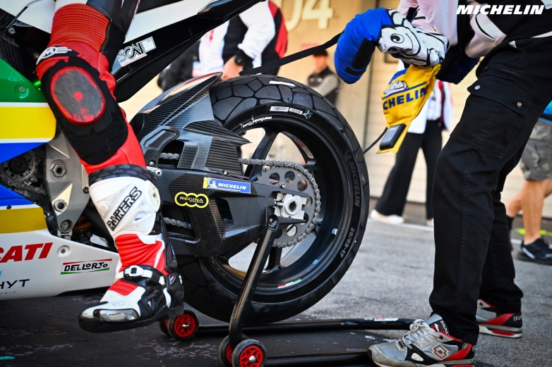 Για τη σεζόν 2025, τα MICHELIN Power ελαστικά που σχεδιάστηκαν για την MotoE περιέχουν κατά μέσο όρο 57% ανανεώσιμα και ανακυκλωμένα υλικά (58% στο εμπρός και 56% στο πίσω ελαστικό).