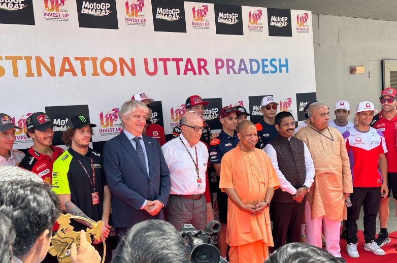 O Chief-Minester της Uttar Pradesh, ο Yogi Adityanath με τους οδηγούς και τους επικεφαλής του MotoGP