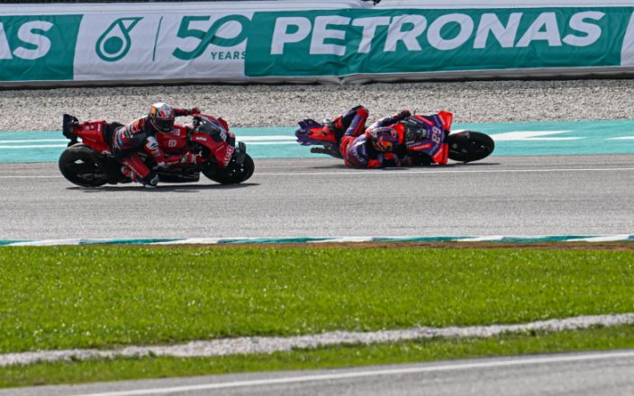 O Jorge Martin πέφτει μπροστά στον Pedro Acosta, που κατάφερε να τον αποφύγει