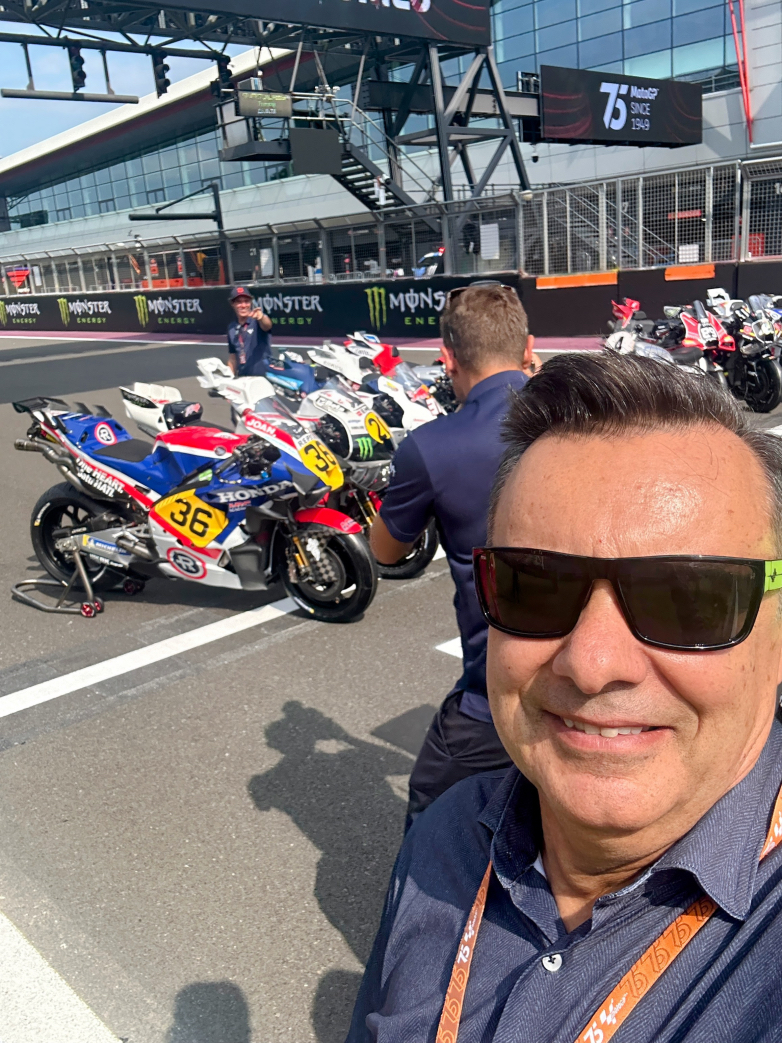 Ο απεσταλμένος μας Δημήτρης Διατσίδης, με φόντο την βαμμένη στα χρώματα του Freddy Spencer του 1983, Honda