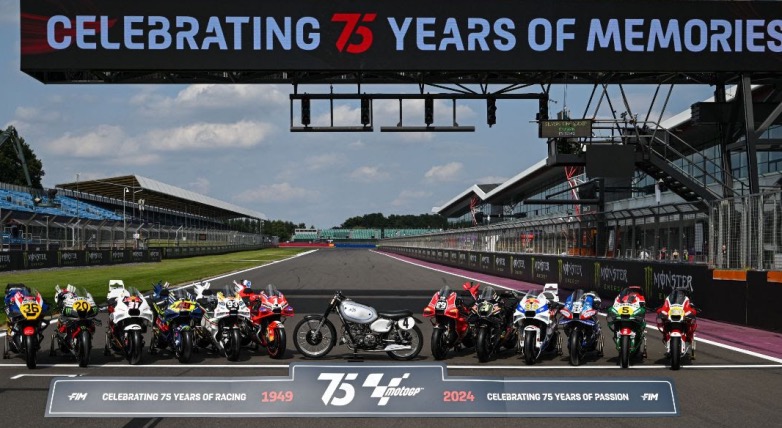 Το MotoGP™ γιορτάζει την 75η επέτειό του καθ’ όλη τη διάρκεια του 2024 και οι εορτασμοί ξεκινούν στο Monster Energy British Grand Prix. Για πρώτη φορά στην 75χρονη ιστορία του αθλήματος, κάθε μοτοσυκλέτα και αναβάτης στο grid θα αγωνιστούν με μια ξεχωριστή, μοναδική εμφάνιση στο Silverstone – και όλα αυτά με μια νότα ρετρό στυλ.