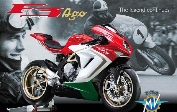 Οι μοτοσικλέτες, που έκαναν το όνομα του Giacomo Agostini θρύλο των δύο τροχών, τώρα επιστρέφουν από το παρελθόν με την μορφή της πιο γνήσιας replica που κατασκευάστηκε ποτέ. Η F3 800 AGO χαρακτηρίζεται από την εταιρεία ως «τελειότητα που κρύβεται σε κάθε λεπτομέρεια». Πολλά τμήματα είναι κατασκευασμένα από κατεργασμένο ελαφρύ κράμα αλουμινίου, με τον σχεδιασμό να είναι μοναδικός.