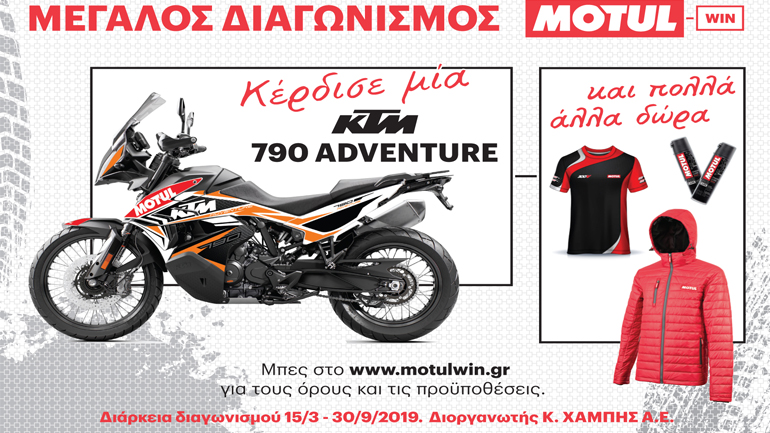 Μετά από συνεχή χρόνια δυναμικής παρουσίας με πολλές κληρώσεις και μοναδικές VIP εμπειρίες σε MotoGP και WSBK, η Motul αποφάσισε το 2019 να προσφέρει το μεγαλύτερο δώρο που έχει δοθεί ποτέ στο χώρο της μοτοσυκλέτας. Κάθε φίλος της γαλλικής φίρμας θα έχει την ευκαιρία να διεκδικήσει ένα KTM 790 Adventure, συμμετέχοντας σε κλήρωση που θα γίνει στις 30 Σεπτεμβρίου 2019. Εκτός από το εντυπωσιακό KTM, κάθε συμμετοχή στο διαγωνισμό θα έχει την ευκαιρία να κερδίσει άμεσα ένα από τα υπόλοιπα 175 συλλεκτικά δώρα της Motul. Padded Jackets, MotoGP T-shirts και λιπαντικά αλυσίδας περιμένουν τους συμμετέχοντες με κάθε μία από τις συμμετοχές τους!