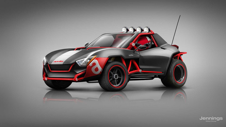 Επιθετικό ρύγχος, λεπτομέρειες που θυμίζουν ανθρακόνημα, κόκκινο της φωτιάς στο χωροδικτύωμα και εξατμίσεις που σίγουρα κάτι μας θυμίζουν. Κάπως έτσι θα ήταν ένα τετράτροχο –αυστηρά διθέσιο- της Ducati, με κάποια ίσως γονίδια από το Ariel Atom.