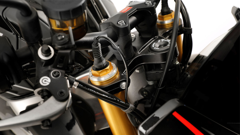 Στην RSV4 του 2019 συναντάμε νέους δίσκους στα φρένα, στα 330 χιλιοστά που ακινητοποιούνται από τις δαγκάνες Monobloc M50 της Brembo. Νέοι θα είναι και οι χρωματισμοί. Rivazza Grey και Arabiatta Black για τη βασική έκδοση RR, με τη RF να έχει πλέον νέα εμφάνιση ονόματι «Superpole».