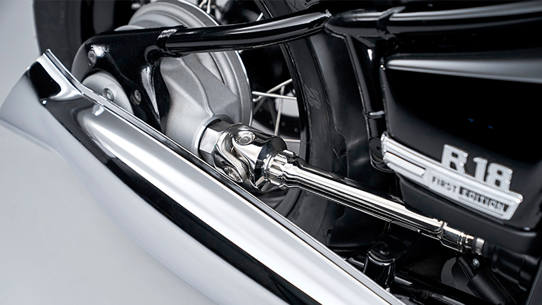 Από τις φωτογραφίες φαίνεται ξεκάθαρα η προσοχή στη λεπτομέρεια της όλης κατασκευής, όπως επίσης και η κορυφαία ποιότητα και βαφή σε κάθε σημείο του R 18. Μερικές φορές σου δίνει την εντύπωση γλυπτού έργου τέχνης και αυτός είναι ακριβώς ο στόχος των Βαυαρών, να δημιουργήσουν δηλαδή μια μοτοσυκλέτα που θα θέσει νέα πρότυπα στην κατηγορία. Οι ακτινικοί τροχοί, οι “fishtail” εξατμίσεις, τα χρώμια σε μηχανικά και περιφερειακά μέρη, τα σιρίτια στο ανάγλυφο ρεζερβουάρ και στο πίσω φτερό, ο “εκτεθειμένος” άξονας της τελικής μετάδοσης και ο τρόπος που αυτός φωλιάζει στο ψαλίδι, ειλικρινά δεν ξέρεις που να πρωτοκοιτάξεις και τι να πρωτοθαυμάσεις.