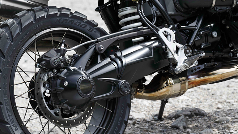 Το R nineT Scrambler δεν έχει τίποτα εξαιρετικό να επιδείξει σε επίπεδο τεχνολογίας, όμως από στυλ ξεχωρίζει. Σε σχέση με την έκδοση Roadster διαφέρει σε αρκετά σημεία. Ο μπροστινός τροχός μεγάλωσε σε διάμετρο (19 ίντσες από 17), ενώ διευρύνθηκαν οι διαδρομές των αναρτήσεων (κατά 5mm μπροστά και κατά 20 πίσω). Στην πίσω ανάρτηση υπάρχει το γνώριμο σύστημα Paralever που χρησιμοποιεί η BMW σε όλα τα Boxer μοντέλα της, ενώ μπροστά το ανεστραμμένο χρυσό πιρούνι άλλαξε σε κλασικό τηλεσκοπικό (με καλάμια των 43mm), καθότι εξυπηρετεί καλύτερα τόσο το retro-look της μοτοσυκλέτας όσο και το χαμηλότερο κόστος.