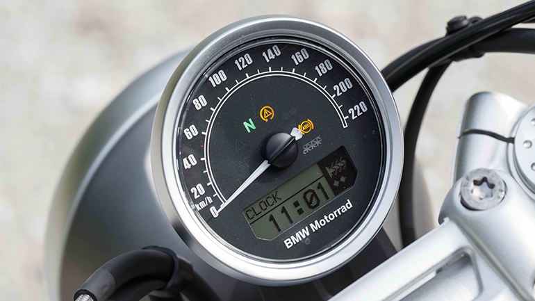 Για τους ίδιους λόγους οι πανάκριβες τετραπίστονες δαγκάνες της Brembo έδωσαν τη θέση τους σε συμβατικές, ομοίως τεσσάρων εμβόλων. Το δοχείο καυσίμου δεν άλλαξε σε σχήμα, όμως από αλουμινένιο έγινε ατσάλινο, ενώ επανασχεδιάστηκε η απόληξη της εξάτμισης φέροντας δύο όμορφα τελικά κωνικού σχήματος της Akrapovic. Από την άλλη, το τιμόνι ήρθε πιο ψηλά και τα μαρσπιέ μετακινήθηκαν ελαφρώς προς τα πίσω. To σύστημα ευστάθειας ASC και το δικάναλο ABS βρίσκονται στο βασικό εξοπλισμό, με το τελευταίο μάλιστα να έχει τη δυνατότητα πλήρους απενεργοποίησής του, κάτι απαραίτητο για γρήγορη οδήγηση εκτός ασφάλτου. Ένα απλό στρογγυλό όργανο, που αναλογικά δείχνει μόνο την ταχύτητα κίνησης, φαντάζει αδιανόητο για BMW του σήμερα. Κι όμως, η συγκεκριμένη έκδοση «σηκώνει» αυτό το συμβιβασμό, καθότι όσο πιο λιτή είναι η μοτοσυκλέτα τόσο πιο αυθεντική δείχνει. Βέβαια, από πλευράς ενδείξεων δεν υστερεί, προσφέροντας ψηφιακό ρολόι, οδόμετρο, διπλό χιλιομετρητή, ημερομηνία επόμενου service, χιλιόμετρα που απομένουν μέχρι αυτό, αυτονομία, καθώς και λυχνίες σφάλματος και διαχείρισης κινητήρα. Τέλος, διαφορετικής σχεδίασης είναι η σέλα, ενώ υπάρχει και after market μονή, από δερματίνη, σε απόχρωση ανοιχτού καφέ.