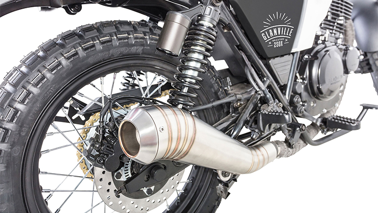 Με scrambler τιμόνι και κλασική «burn-free» επένδυση του λαιμού της εξάτμισης, το Glanville 250 X είναι γεννημένο για τον αναβάτη που θέλει μια μοτοσυκλέτα με ξεχωριστό στυλ και συναίσθημα. Με σύστημα ABS, φώτα LED, ρυθμιζόμενα πίσω αμορτισέρ, θύρα USB, κεντρικό και πλαϊνό stand, ψηφιακό πίνακα οργάνων με αναλογικό στροφόμετρο και όλα όσα θα χρειαστείς για να κάνεις την κάθε στιγμή στη σέλα του… μια συγκλονιστική εμπειρία!