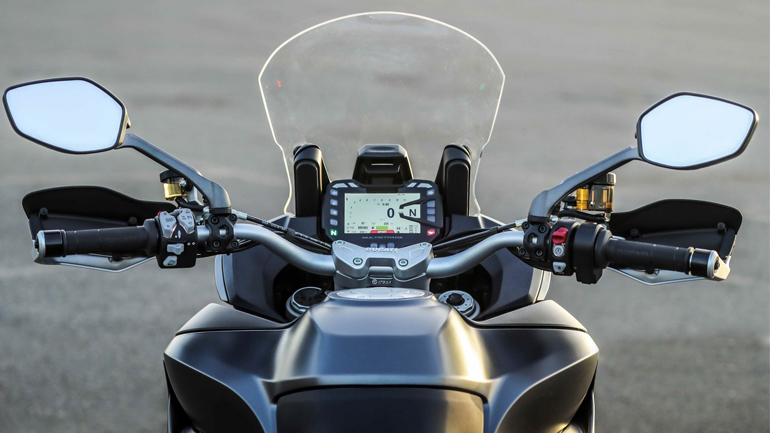 Τα οδηγικά προγράμματα παραμένουν τέσσερα (Sport, Touring, Urban, Enduro), ενώ στα ηλεκτρονικά βοηθήματα συμπεριλαμβάνονται Cornering ABS, ρυθμιζόμενα συστήματα traction και wheelie control, περιστρεφόμενα φώτα (στο S), όλα ελεγχόμενα από τη μονάδα αδρανειακής μέτρησης Bosch IMU (Inertial Measurement Unit), που με τη σειρά της συνεργάζεται με την ηλεκτρονική ημι-ενεργητική ανάρτηση DSS Evolution (στο S). Όλες οι εκδόσεις διαθέτουν στον στάνταρ εξοπλισμό cruise control, κεντρική κλειδαριά keyless, ενώ η έκδοση S διαθέτει επιπρόσθετα Bluetooth για να συνδεθεί μέσω του Ducati Multimedia System (DMS) με smartphone. Στην απλή έκδοση υπάρχει πίνακας οργάνων LCD, ενώ στις τρεις ακριβότερες έχει χρησιμοποιηθεί μια TFT 5 ιντσών.