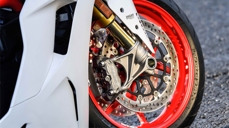 Μικρές διαφορές υπάρχουν στους διπλούς προβολείς και στη σχεδίαση του φέρινγκ, το ίδιο και στη ρυθμιζόμενη ζελατίνα. Πλαίσιο και ψαλίδι σχεδιάστηκαν αποκλειστικά για αυτό, με το πρώτο να είναι -κλασικά- ατσάλινο χωροδικτύωμα και το δεύτερο αλουμινένιο μονόμπρατσο. Το πιρούνι είναι ανεστραμμένο πλήρως ρυθμιζόμενο Marzocchi για την απλή έκδοση, ενώ στη S έχει προτιμηθεί ένα απόλυτα πολυρυθμιζόμενο Ohlins. Τα αμορτισέρ είναι της Sachs και της Ohlins αντίστοιχα, και ρυθμίζονται ως προς την απόσβεση επαναφοράς και την προφόρτιση του ελατηρίου. Η σέλα έχει τη δυνατότητα ρύθμισης κατά 20mm στο πάνω – κάτω και δείχνει άνετη για τον συνεπιβάτη, για τον οποίο έχουν προβλεφθεί και χειρολαβές καλά κρυμμένες κάτω από τα πλαστικά. Στον extra εξοπλισμό υπάρχουν βαλίτσες και tank bag, που σίγουρα αυξάνουν ακόμα περισσότερο τις τουριστικές δυνατότητες του Supersport.